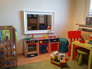 Unser großer Garten ist ausgestattet mit Schaukel, Sandkasten, Spielhaus etc.. Auch unser Haus bietet viel Platz zum Spielen, außerdem habe ich ein eigenes Spielzimmer für die Tageskinder, in dem sie spielen oder sich auch mal zurückziehen können. Selbstverständlich wird bei uns nicht geraucht.